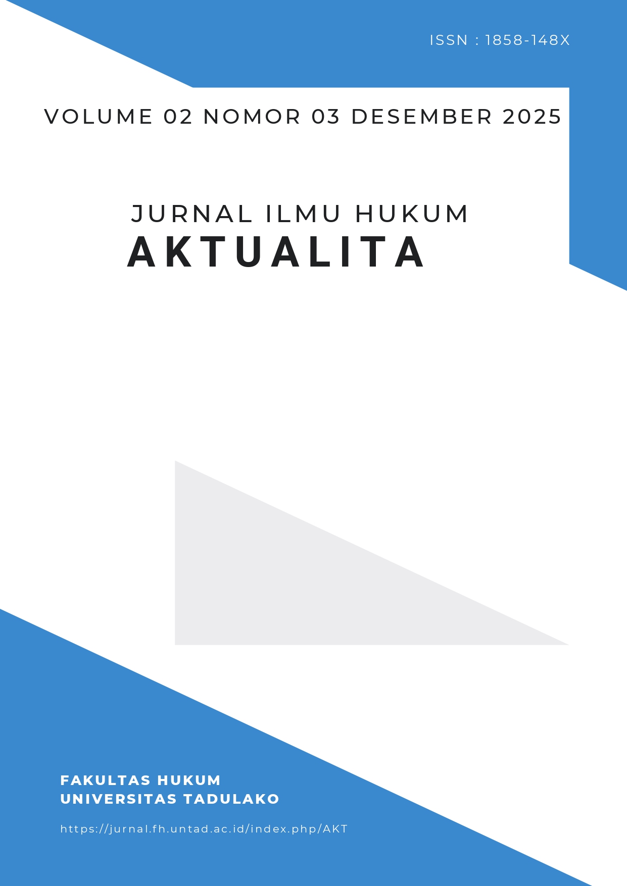 Jurnal Ilmu Hukum Aktualita terbit sejak tahun 2005 merupakan jurnal kedua yang dikelola oleh Fakultas Hukum Universitas Tadulako, Aktualita merupakan terbitan berkala versi cetak dengan Nomor ISSN 1858-148x.  Berkala ini terbit tiga kali dalam setahun  yaitu Juli, Nopember dan Maret.